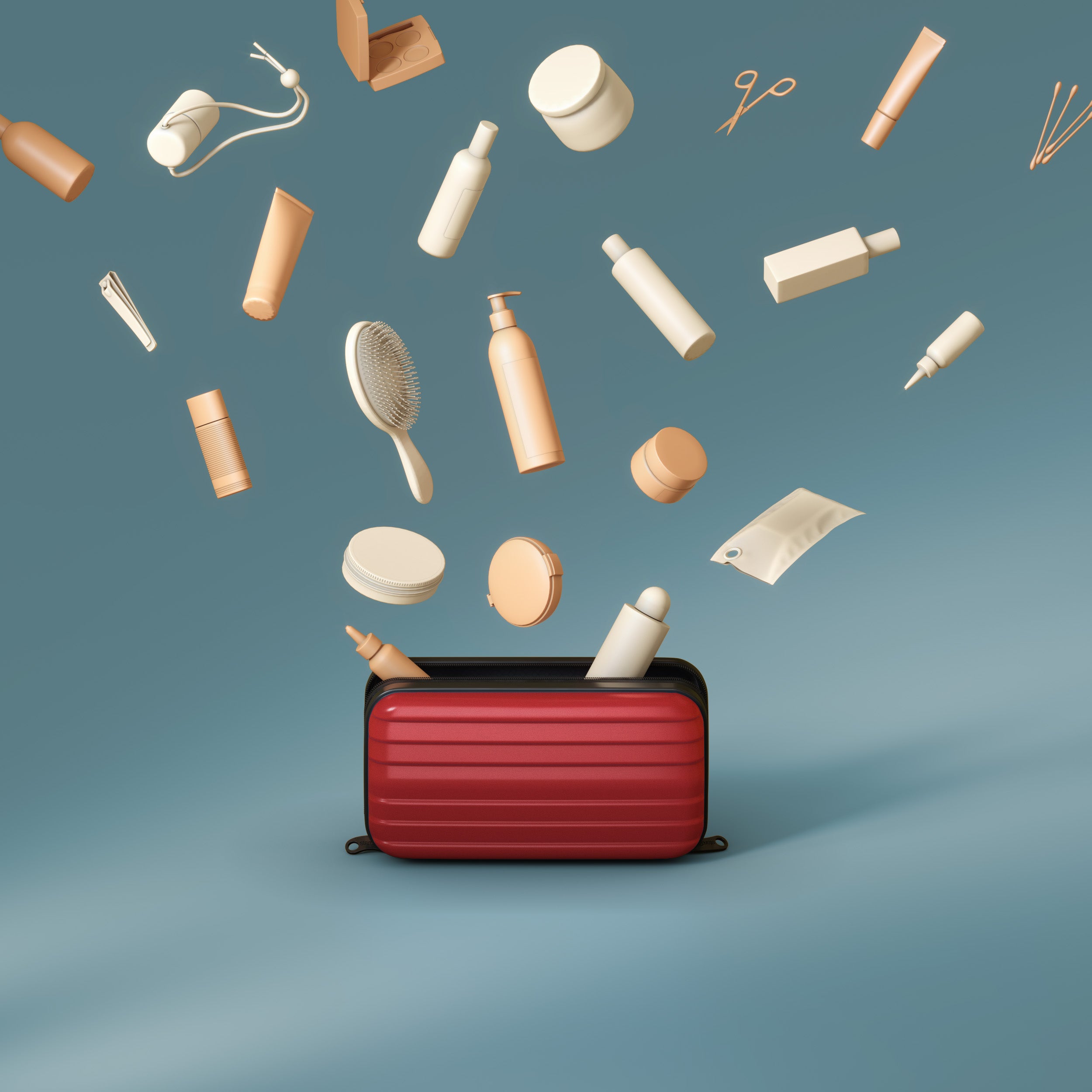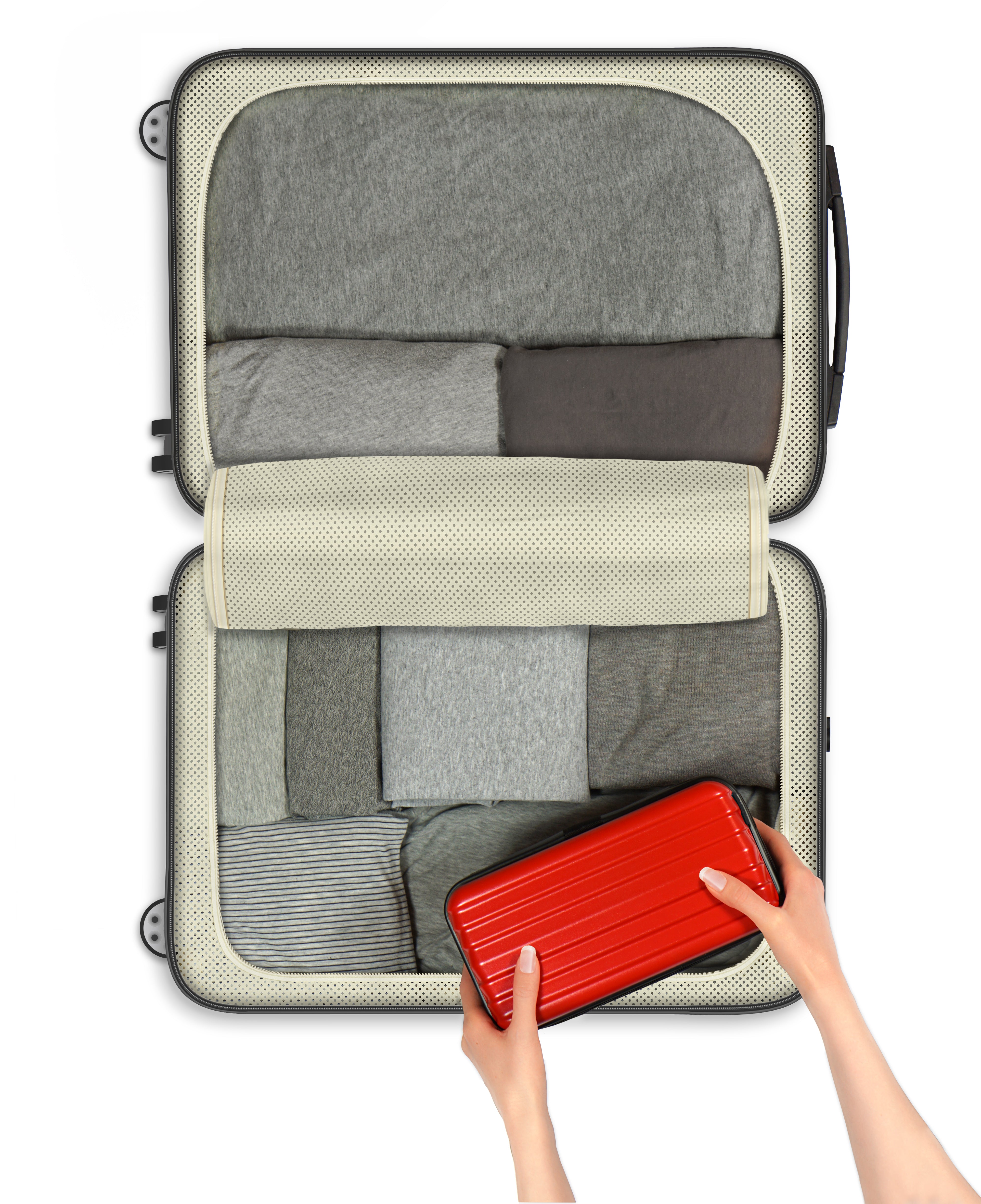 • Gummiband mit 3 Einteilungen für Rasierer, Mascara, Lippenstift etc.